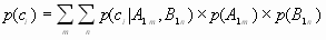 | ci, dj) - вероятность пребывания в состоянии ek в зависимости от состояний ci, dj. Так как события, представленные вершинами «c» и «d» независимы, то совместная вероятность равна их произведению:p(ek