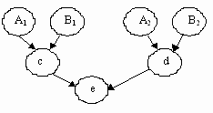 Из этих выражений видно, что вершина «e» условно не зависит от вершин A1, A2, B1, B2, так как нет стрелок непосредственно соединяющих эти вершины.